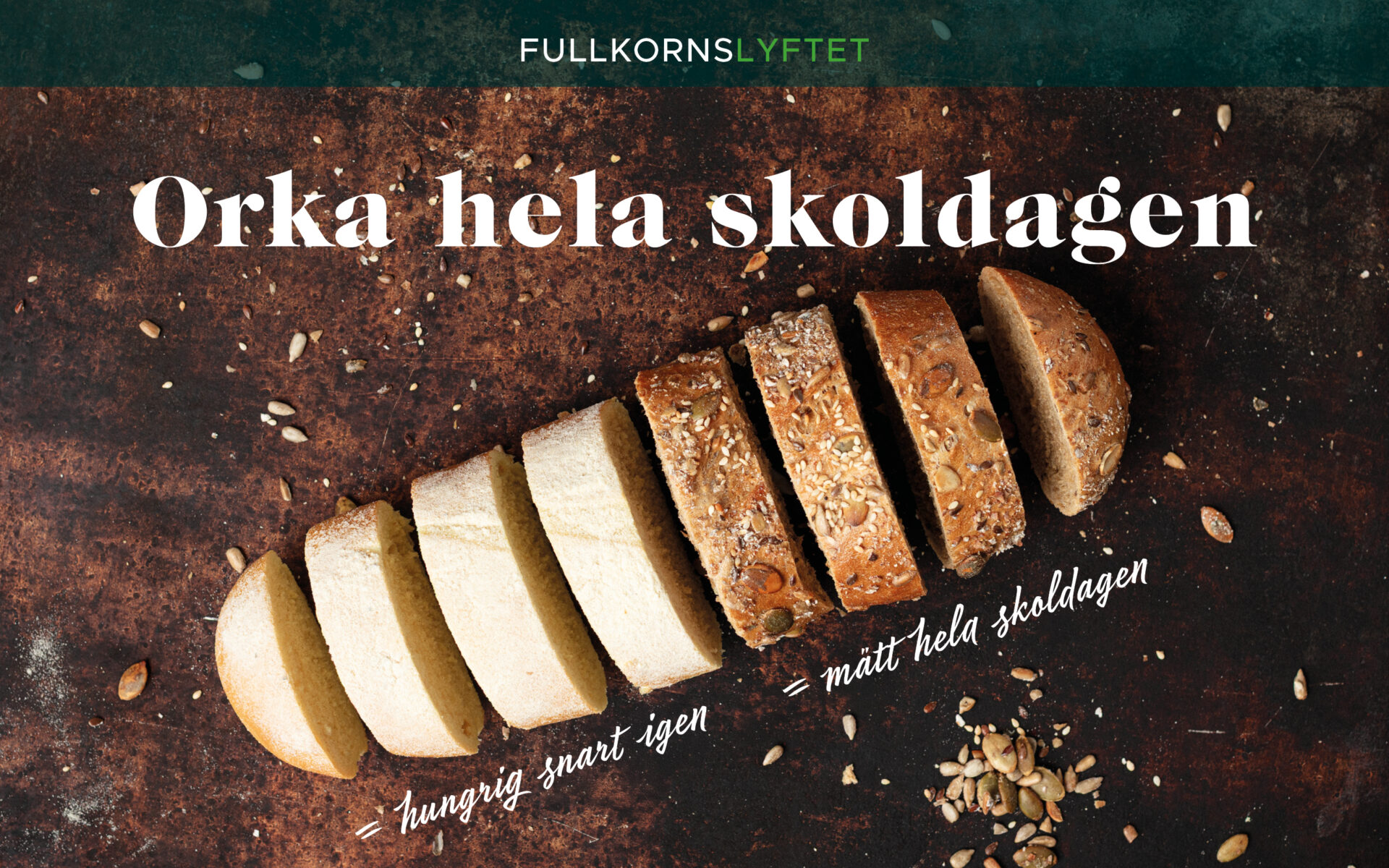 ”För att orka mer under dagen” är det främsta skälet för ungdomar att välja mer fullkorn, enligt Ungdomsbarometern 2026, där 1210 ungdomar i åldern 15-24 år svarade på frågor om fullkorn. Med bakgrund av detta har FullkornsFrämjandet tagit fram ett stöttande kommunikationsmaterial i form av planscher, bordsryttare och digitala enheter som fokuserar på att fullkorn hjälper till att ladda batterierna för att orka hela skoldagen.