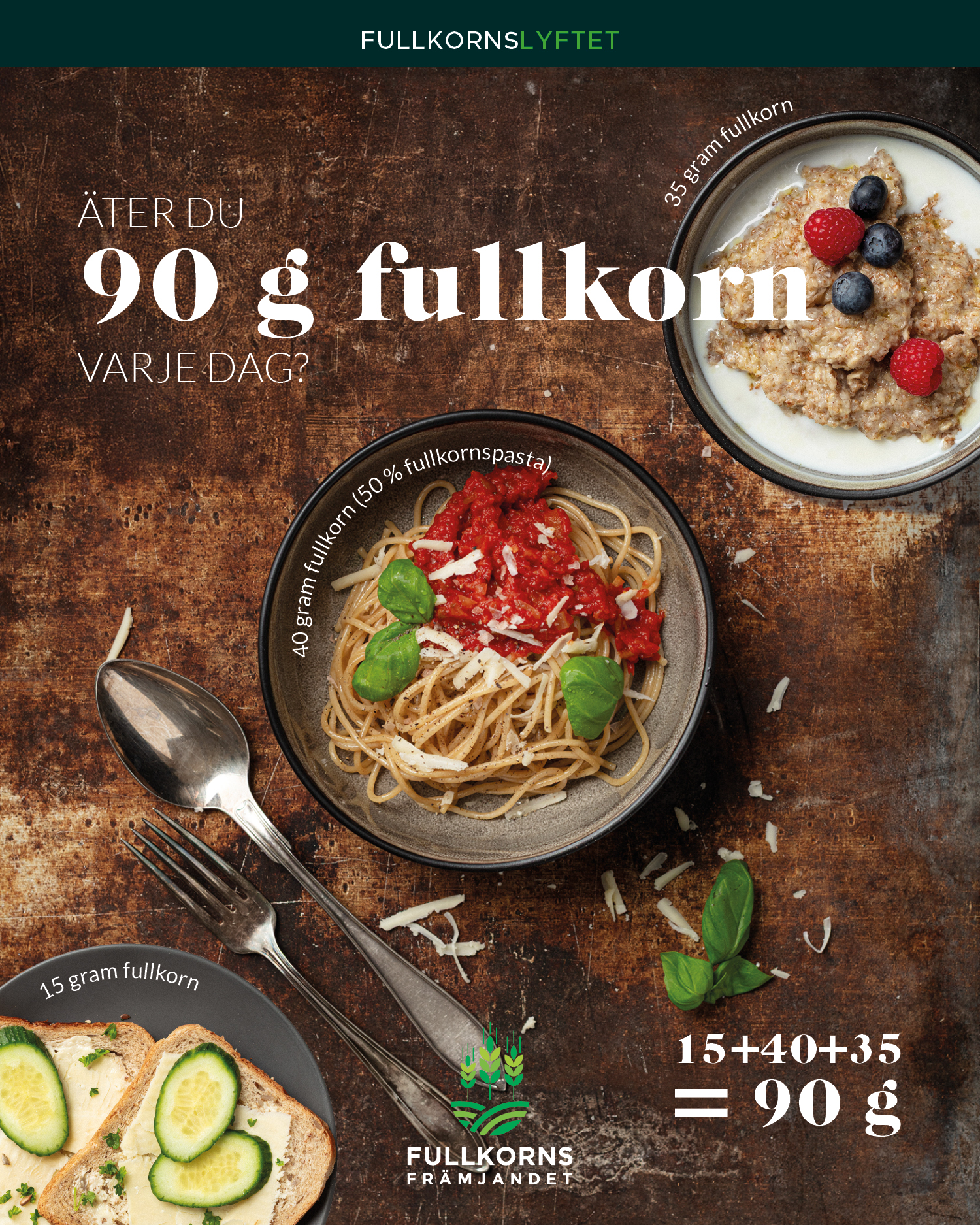 I tillägg till att förklara varför fullkorn är viktigt finns också tydliga och inspirerande exempel på hur mycket 90 gram fullkorn är. 95% av ungdomarna är positiva till att äta fullkorn. Mjukt bröd med fullkorn och havregrynsgröt är i topp bland de fullkornsprodukter ungdomarna föredrar.